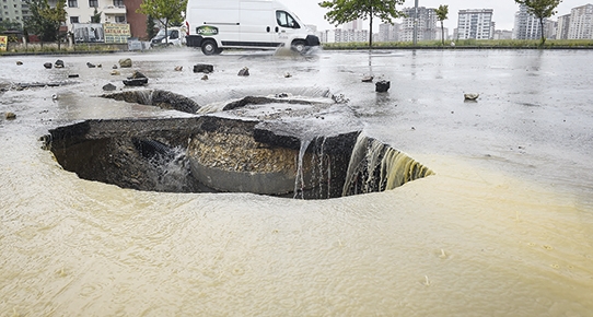アンカラでは昨日、雷を伴う大雨に見舞われた。この大雨により道路は浸水し、バトゥケント地下鉄駅も浸水被害を受けた。アンカラにおける大雨は昨日も続き、バトゥケント市イルクイェルシム区の1237号線では道路の陥没が起きた。