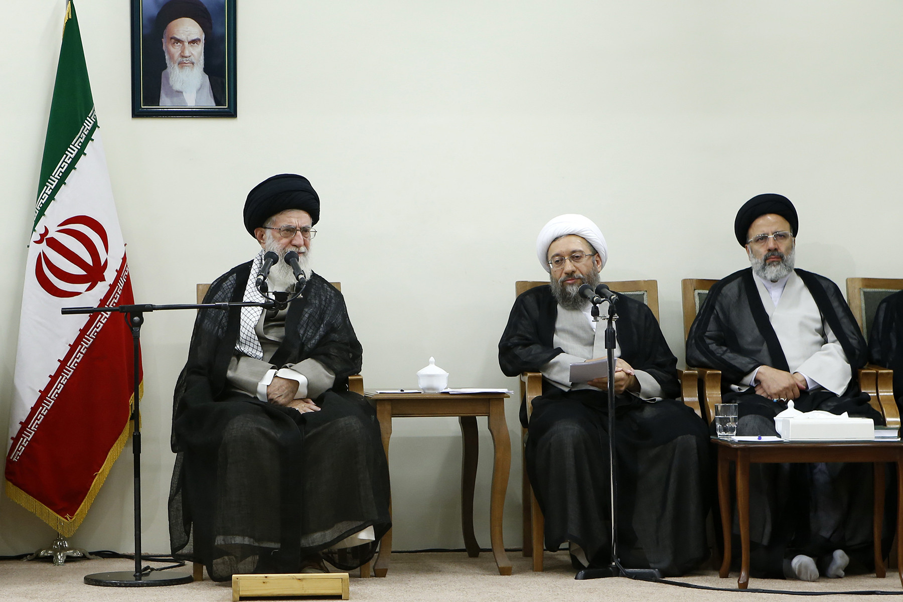 イスラーム革命最高指導者のアーヤトッラー・ハーメネイー閣下は昨朝、司法権長官ならびに同権の高官らと面会し、その中で〔‥‥〕国が抱えるマクロな課題と国益に関して、三権の長〔=大統領、国会議長、司法権長官〕が互いに心と声を一つにして協力し合うことが必要かつきわめて重要だとした。