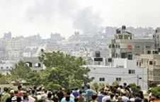 ―地上からのミサイル攻撃は、砲台と国境に駐留している戦車によってのみ行われている。同軍により、建物を瓦礫と化し、彼らは居住区へ侵入しようとしている。しかし、現在までのところ、こうしたことは成功していない。この侵攻を予想していた抵抗により、あらかじめ予防的な措置が採られていたようだ。もちろん、占領軍は、ガザ地域全体の交通の要衝であるサラーホッディーン通りを標的とし、移動できなくなるようにしている。