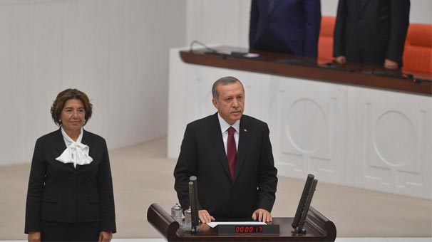 トルコの12代大統領に選ばれたレジェプ・タイイプ・エルドアン氏は、13時半にケチオレン・スバイエヴレルにある自宅を出た。エルドアン大統領が自宅を出たところで、儀典総局長と第一副官が出迎えた。エルドアン大統領は、大統領公用車を使ってTBMMへ来た。エルドアン大統領の乗った公用車の旗はしまわれたままだった。その後、TBMMにチャンカヤ門から入った。国会でエルドアン大統領を最高齢の副党首、アイシェ・ヌル・バフチェカプル氏が迎えた。エルドアン大統領は、Aタイプの軍の式典で迎えられた。TBMMのジェミル・チチェキ議長は、エルドアン夫妻をシェレフ門で出迎えた。