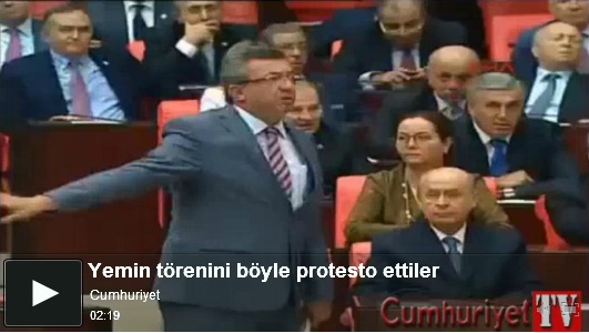 CHP(共和人民党)のエンギン・アルタイ会派副代表は、TBMM(トルコ大国民議会)ジェミル・チチェキ議長が発言を認めないことを批判して、TBMMの内規が記された冊子を投げつけながら、近くのCHP議員たちと共に総会を去った。
