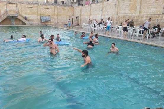 (プールでの水遊び、プールサイドでの食事風景)。