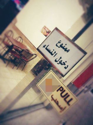 これは、が女性の入店を完全に拒否するか、あるいは入店するにはマハラムを連れて来させるレストランを写した多くの写真が、サウジアラビア国内に広まったことに端を発する。こうした看板を設置したレストランのある支店の店長(匿名)は、「はい、あれはわれわれの店舗の一つですが、全ての店舗(に看板が設置されている)わけではありません」と述べ、「看板を設置するに至ったきっかけは、ある店舗で起こった騒動です。問題を取り除くために運営側はこの決定を課しました」と語った。また決定は、「レストランでの商売を乱す行為を取り除き終われば、取り下げます」と説明した。