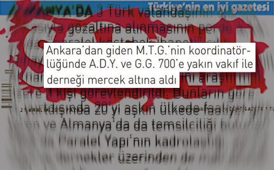 サバフ新聞が報道した記事により、3人のトルコ人MİT関係者がドイツのトルコ人とトルコ人団体の情報を集めるために行ったことが発覚。記事によると、約3か月前 3人のトルコ人MİT関係者はドイツのトルコ人とトルコ人団体の財源調査を任されていた。アンカラから任務を受けた当該の人物らが、移民らに関係する700に近い財団と団体の動向を追っていたことが判明した。