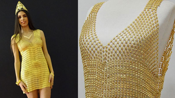 カフラマンマラシュ県のとある宝石店が制作した、40万個の金パーツを使用し、重さにして3キロ、価格にして35万リラ(約1680万円)の金のドレスが、購買力のある人々(資産家)の関心を集めている。