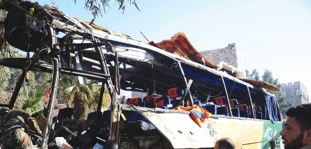 昨日ダマスカスで爆発したレバノンのバス(ロイター)