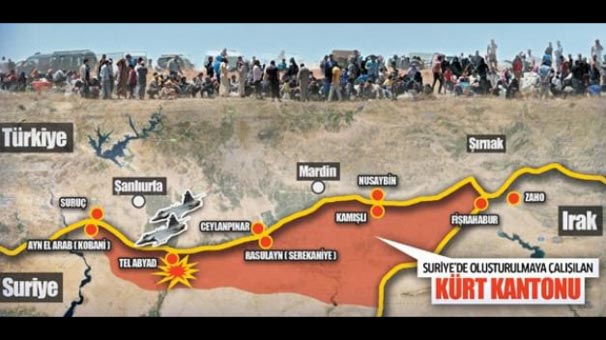 アラブ人とトルクメン人がトルコ国境に押し寄せる原因となった、テル・アブヤドでの砲撃により無人になった地域 にPYDとPKKが配置されている 。シリアのクルド地域に新しい州を作る目的でシリアのクルド政党であるPYDと国最適な連合軍の共同の攻撃が続けられている。この一環でテル・アブヤドに空爆した連合軍に加え、地上から 介入したPYDのため アラブ人とPYDが対立している クルド人がトルコ国境に向けて移動せざるを得なくなったことが明らかにされた。人口の構成を変更するためにはじめられたこの取り組みの一環でYPG勢力も無人地域 に駐屯 していると述べた。スター紙に話した当局筋は、先日国際的な連合部隊空爆の結果子供20人を含む35人が亡くなったと述べた。空爆はアクチャカレのすぐ向かい側にある シリアのヌステル、フベイェジェ、ゼイディ、そしてアルバ地域に集中した。国境に殺到したシリア人を国内に入れる一方今後の状況において人道上の危機が起こらなければ、越境に許可が与えられないだろうと述べた。コバーニーとカムシュル地域がまとめた努力がPYDと国際的な連合部隊の勢力によって 共に行われた行動であることが強調された 。