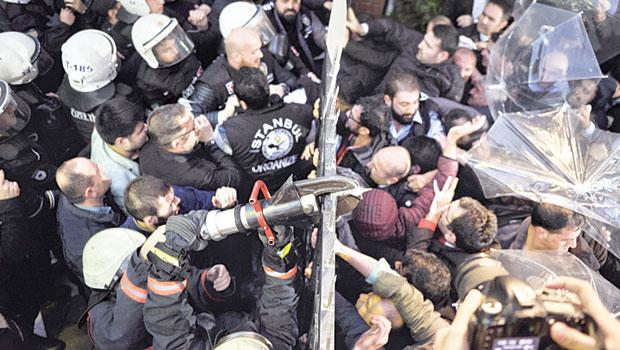 管財人が指名されたコザ・イぺキ放送グループのイスタンブルにあるビルの前が警察の催涙ガスによる介入の舞台となった。生放送ケーブルを遮断した警察は門の前にいた人々に催涙スプレーをかけ、鉄の門を切って内部に入った。管財人らは私服警官と共にビル内に入ったあと、カナルチュルクTVとブギュンTVの放送を中止させた。