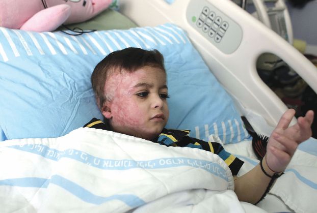 ドゥーマー村の家がユダヤ過激派に放火され火傷を負ったアフマド・ダワービシャ君(AFP)