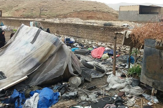 ホッラムアーバードから5キロのところに、ある家族が暮らしている。彼らは最低限の生活上の便宜〔※ガス、上下水道、電気、学校、病院などのこと〕も奪われた状態にあり、3年以上も古びたビニール製のテントの下で雨露をしのいでいる。ここ最近は寒さと雨が原因で、泥水がたまった場所で、厳しいテント暮らしを余儀なくされている。彼らの「家」にある家財道具は、周辺にあるガラクタしかない。