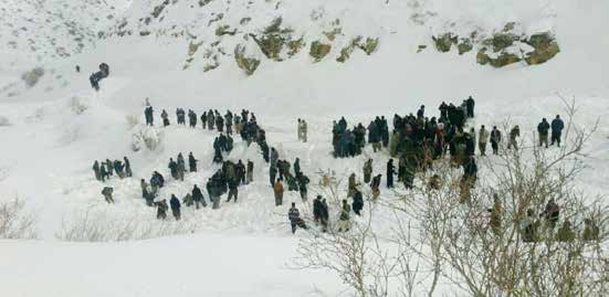 【イラン紙17面:事件部:マルジャーン・ホマーユーニー】「よいっしょ、よいっしょ」。ある男が大きな声で叫ぶ。雪原では赤い柄の付いたシャベルが目立つ。数名の男たちが雪を掘っている。その深さはすでに50センチを越えようとしている。雪の下から手が出てくる。他の手が、助けに向かう。雪がどけられ、若い「クーレバル」の遺体が掘り起こされる。その遺体にはいまだ、荷物を背負うためのロープが肩にかかっていた。