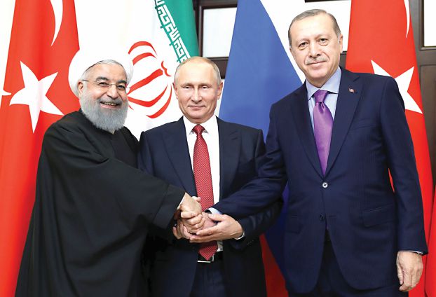 ロシア南部のソチで、ヴラジミール・プーチン大統領、イランのハサン・ロウハーニー大統領、トルコのレジェップ・タイイップ・エルドアン大統領が首脳会談を行い、プーチン大統領提案によるシリア政府と反体制派の和平協議「シリア諸国民 ...