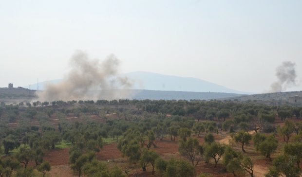 ■シリア領内に進駐するトルコ軍がアレッポ県北西部のロジャヴァ支配地域を砲撃(2018年1月13日)