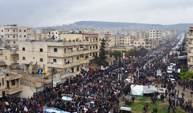 ■ロジャヴァ支配地域各地でトルコ軍の砲撃に反対する大規模デモ、反体制系サイトはロジャヴァがトルコ軍の攻撃に対して民間人を「人間の盾」として利用しようとしていると批判的に報道(2018年1月18日)