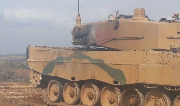 ■アレッポ県アフリーン市一帯での戦闘でYPG主体のシリア民主軍はトルコ軍戦車を破壊(2018年1月26日)