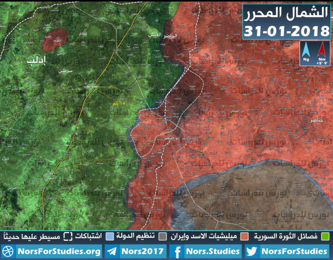 ■シリア軍はイドリブ県南西部で進軍を続け、サラーキブ市に迫る(2018年1月31日)