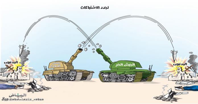 サウジアラビア日刊紙『リヤード』(2月11日付)は、トルコ軍とともにアレッポ県アフリーン市一帯に侵攻している「オリーブの枝」作戦司令室所属の反体制武装集団(自由シリア軍)による民間人への無差別攻撃を非難する風刺画を掲載し …