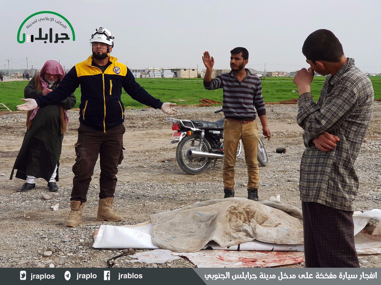 ■トルコの支援を受ける反体制派支配下のジャラーブルス市(アレッポ県)の自由警察検問所で車が爆発し、9人が死亡(2018年3月7日)
