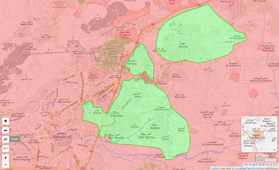 シリア:軍は東グータ地方のマディーラー市を完全制圧、同地での死者数は1,000人を超える