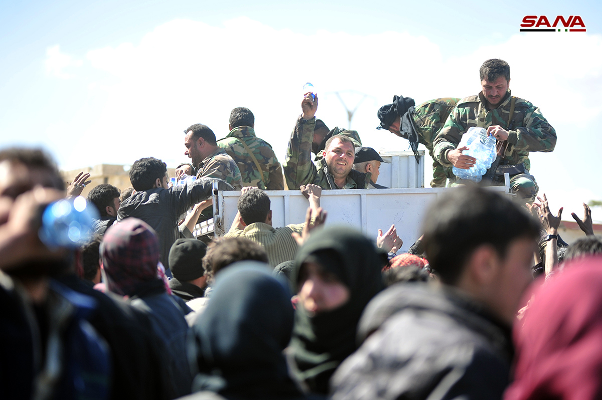■反体制派支配下の東グータ地方から住民数千人が人道回廊を通じてシリア政府支配地域に避難(2018年3月16日)