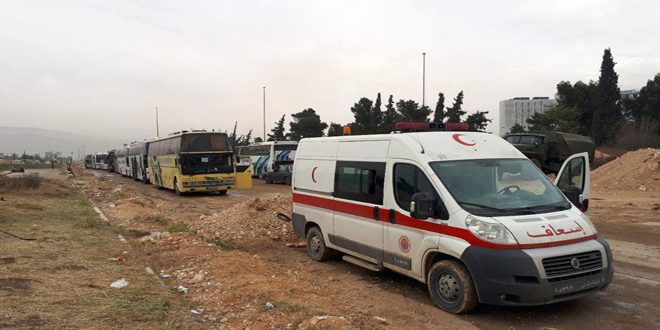 ダマスカス郊外県では、SANA(3月28日付)によると、ラフマーン軍団の支配下にあったアルバイン市、ザマルカー町、アイン・タルマー村、ダマスカスジャウバル区から、戦闘員1,374人を含む5,290人が大型バス89台に分乗 ...
