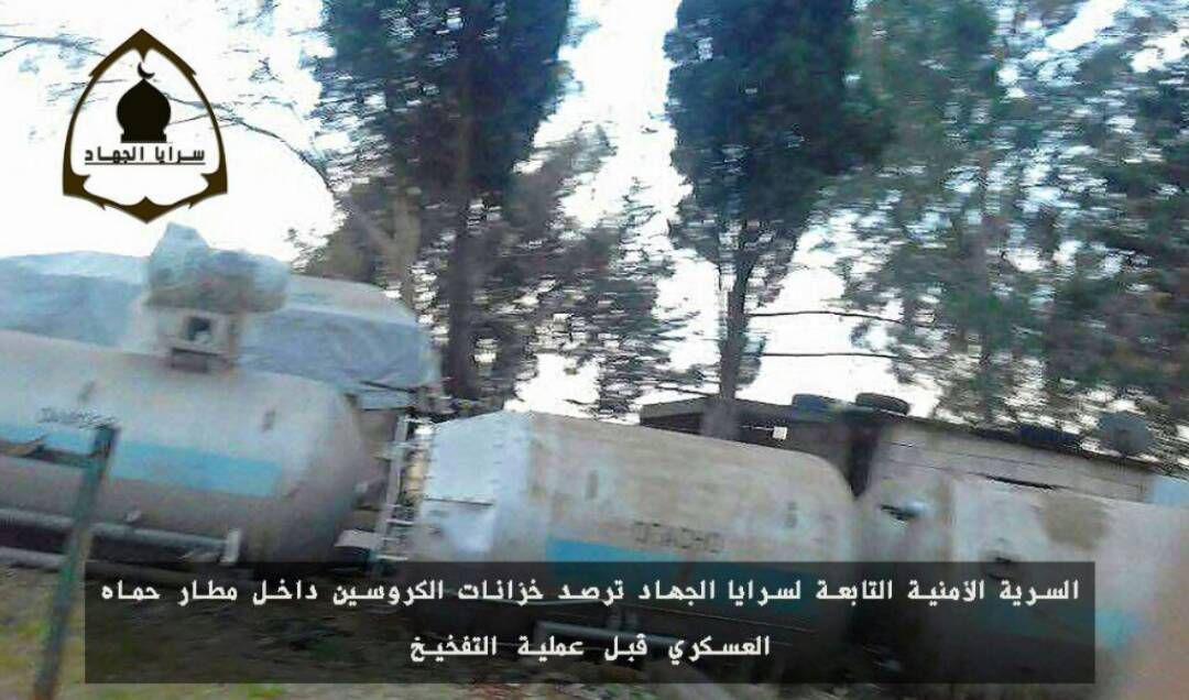 ハマー県のハマー航空基地で18日に発生した爆発に関して、ジハード中隊を名乗る武装集団が犯行声明を出した。 声明によると、爆発は、航空基地内の武器弾薬庫とケロシン倉庫に仕掛けた爆弾によるもので、攻撃は「シャームのくにのイス …
