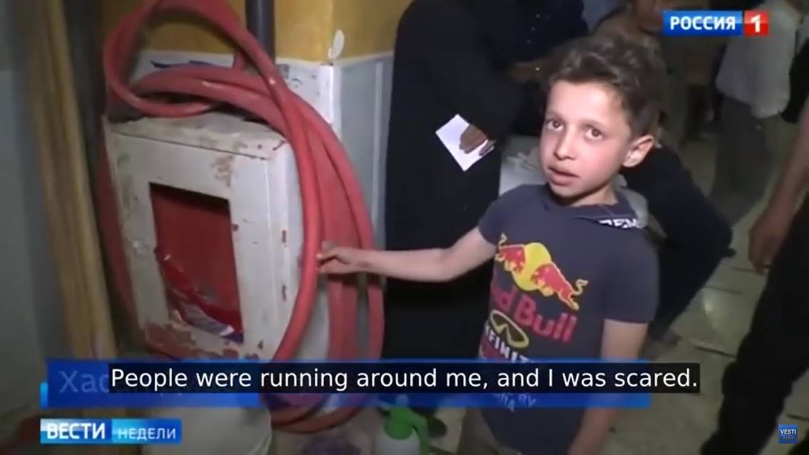 ■ロシア24はドゥーマー市で発生した塩素ガス使用疑惑事件の映像に映っていた少年にインタビュー(2018年4月23日)