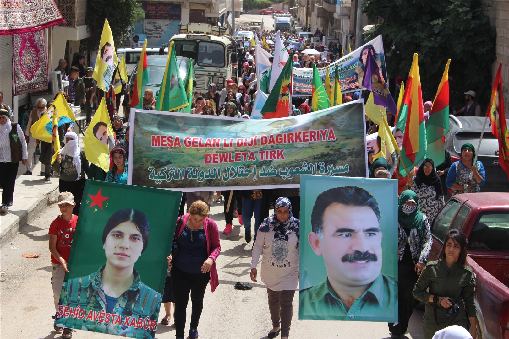 ■ロジャヴァが実効支配するハサカ県、アレッポ県、ラッカ県各所でトルコの侵攻、占領、住民の強制移住に反対する抗議デモが行われ、各会場に多数の住民が集まる(2018年5月26日)