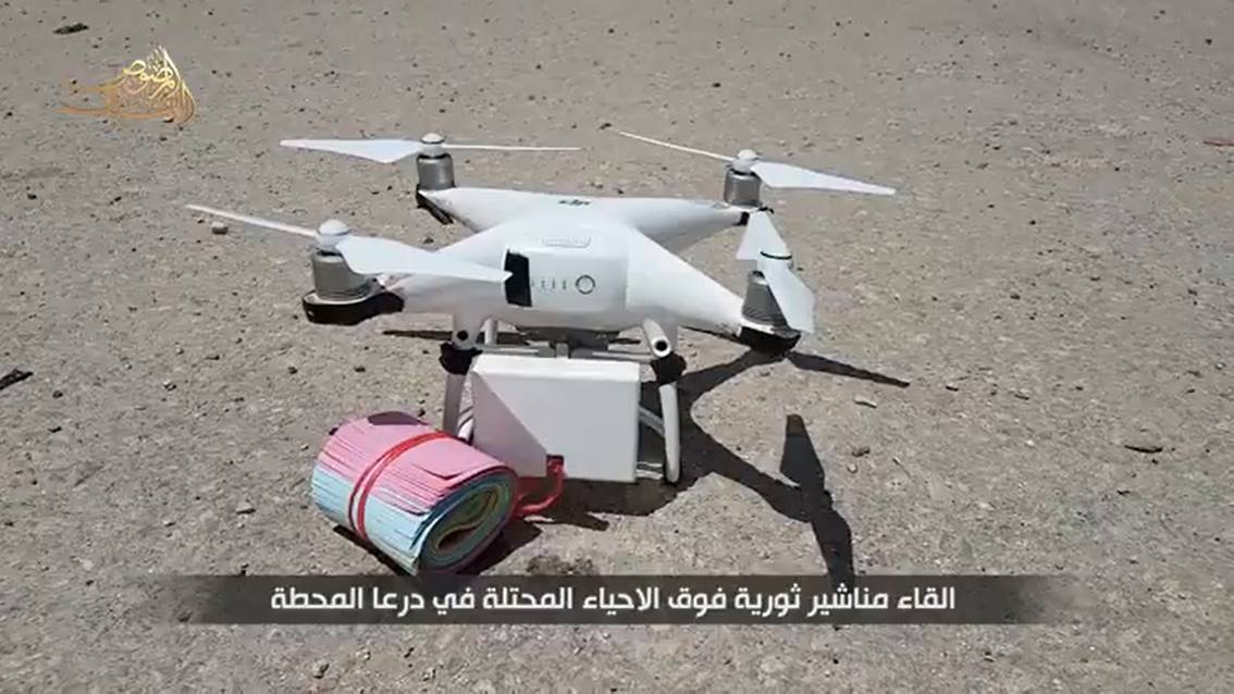 ■シリアのアル=カーイダと目されるシャーム解放委員会が主導する「堅固な建造物」作戦司令室はダルアー市内のシリア政府支配地域にビラを散布し、アサド政権との戦闘と解放を約束(2018年5月31日)