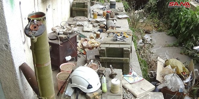 ■ダーイシュに忠誠を誓うハーリド・ブン・ワリード軍の拠点(ダルアー県シャジャラ町)でシリア軍は米国製の武器、イスラエル製の食料品、ホワイト・ヘルメットの装備を発見し押収(2018年7月29日)