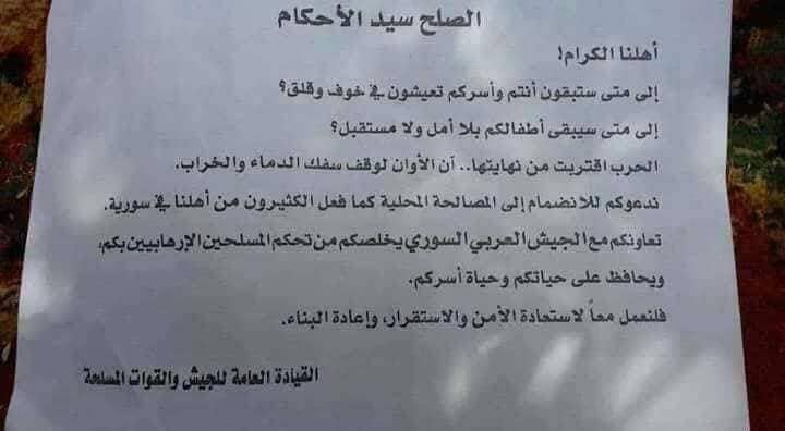 アル=カーイダの幹部アブー・ハマーム・シャーミー氏が主導するフッラース・ディーンは声明を出し、シリア政府との和解を「解放区を引き渡そうとする卑怯な裏切り行為」、「信仰の弱さの現れ」と非難、「革命の敵」に対して「努力、言葉 ...