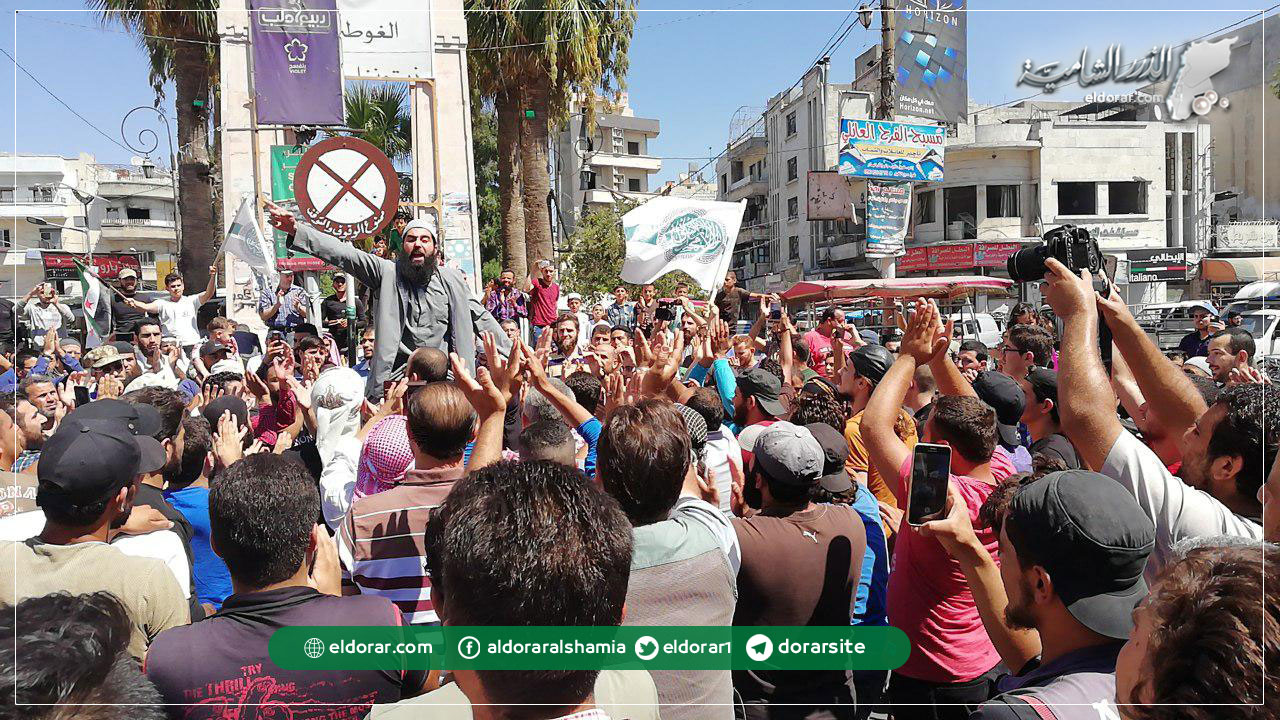 ■イドリブ県、アレッポ県各所でデモが発生、参加者はシリア革命の旗とアル=カーイダ系組織の旗を掲げ、政権打倒とロシアの攻撃反対を叫ぶ(2018年8月31日)