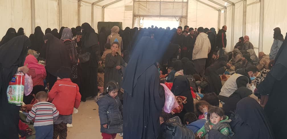 ■ダイル・ザウル県南東部で「解放」されたダーイシュ戦闘員の家族がハサカ県のフール町にある避難民キャンプに到着(2019年2月22日)