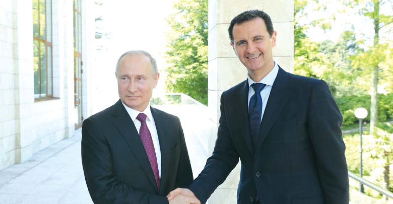 プーチン大統領は、「過去数十年間の様々な分野における二国間協力を通じ、広範な経験が得られた。そして、今日ロシアとシリアは国際的なテロや過激派との戦いにおける同盟関係にある」と述べた。続けて「共同の努力がシリアのテロリズムに最終的敗北をもたらすと確信している」と述べ、国家主権と平和の保護、国家安全保障や復興に向けたシリア政府とその国民に対する支援提供を今後も継続することを表明した。
