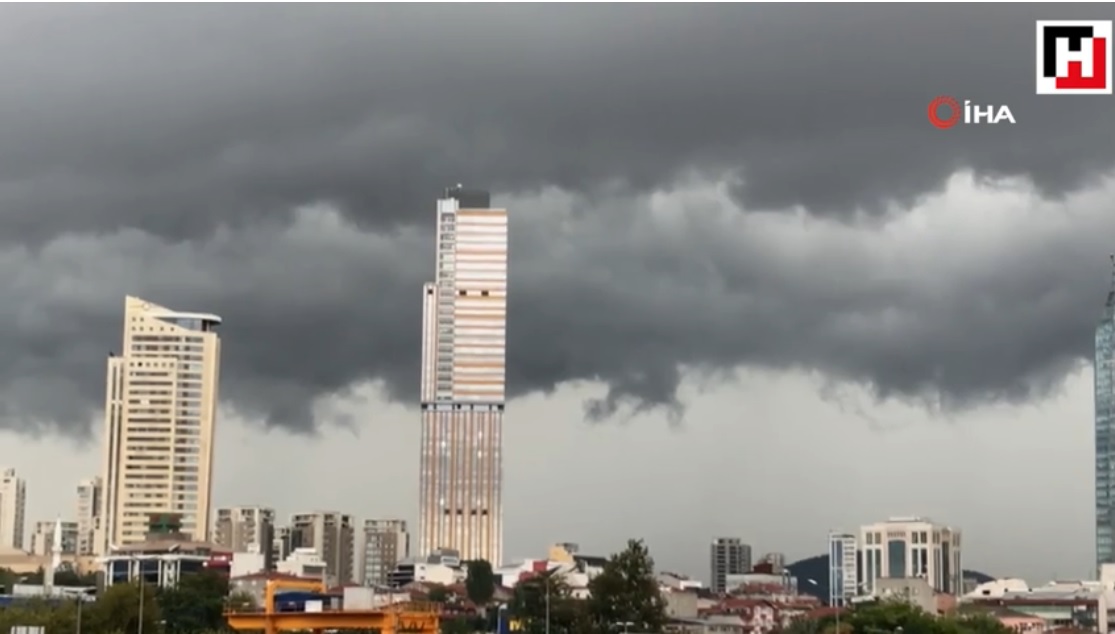イスタンブルで今日予想された豪雨の前に、アジア側を空を黒い雲が覆っているのが観測された。
