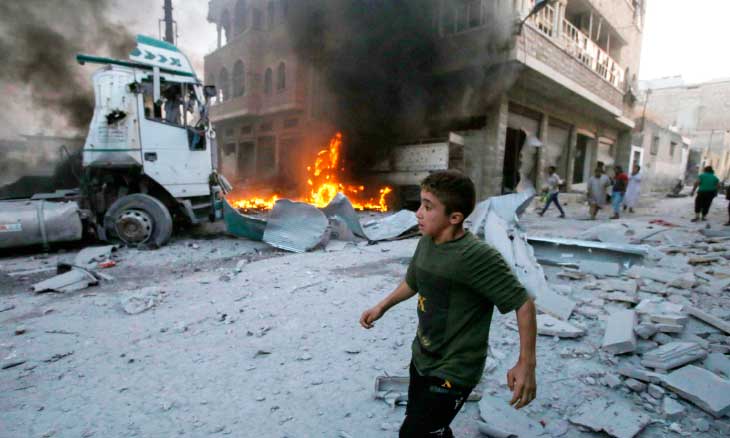 シリア政府の軍用機はシリア北西部の低平地上空における軍事飛行を再開し、イドリブ地方とラタキア地方の居住地域に多数の砲弾と樽爆弾の雨を降らせた。政府軍は同時に、反体制勢力の支配下にあるアレッポ郊外やハマー郊外の街や村を砲撃していた。