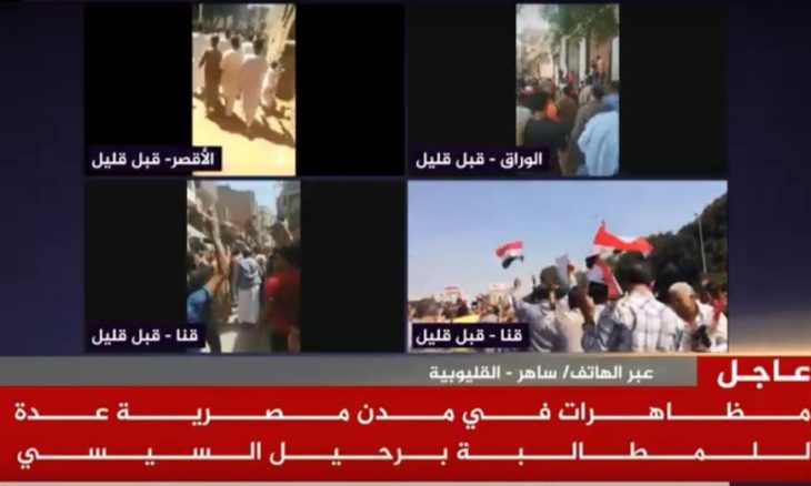 エジプトのマスメディアは、アルジャジーラチャンネルが国内の騒動を激化させ、同国を混乱に陥れようとしているとして、ここ数週間アルジャジーラに対する激しい攻撃を浴びせている。同チャンネルが、エジプト人がスィースィー政権に反発していると示唆する目的で、捏造された虚偽のビデオを公開しているとする見解がその理由だ。その後、同国の司法局長は(デモ参加者の)逮捕作戦に関する特別声明を発表した。これによれば、逮捕者の多くはスィースィー大統領の退陣を求めるデモに参加したことを自白しており、また彼らの多くが中流階級や貧困層の生活水準に影響する同政権による経済政策に関して反発している。