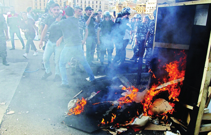 一方、ベイルート中心部にあるシュハダー広場には多くの若者が押し寄せ、昨今の抗議運動の開始時よりデモ参加者たちが設置していたテントを破壊した。これに対し、自由愛国運動(党)は山岳レバノン県ジュニエにおいて、ミシェル・アウン大統領とジュブラーン・バースィール外務大臣を支持するデモを行った。また複数の報道によって「ヒズボラ」と「アマル運動」のメンバーとされた人々は、ベイルート中心部のリヤード・スルフ広場とシュハダー広場で座り込みを行っている人々を襲撃し、デモ参加者を棒で攻撃した上、彼らのテントや演壇を破壊した。またアナトリア通信に所属する目撃者によれば、両党の多くの支持者が、シュハダー広場で座り込みをする人々によって掲げられていた「拳」という標語に火を放ったという。