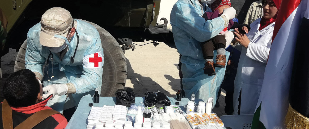 ロシアコーディネーションセンターは、パルミラ市で約400世帯に対し食糧・医療支援を提供し、これら世帯の子供たちに勉強道具を贈った。これらは、テロのために避難し、のちに同市へ帰還した住民たちに向け、ロシア政府から提供されたものである。一方、ドイツのアンゲラ・メルケル首相はこうした避難民の人道的状況の政治手段化を試みた。