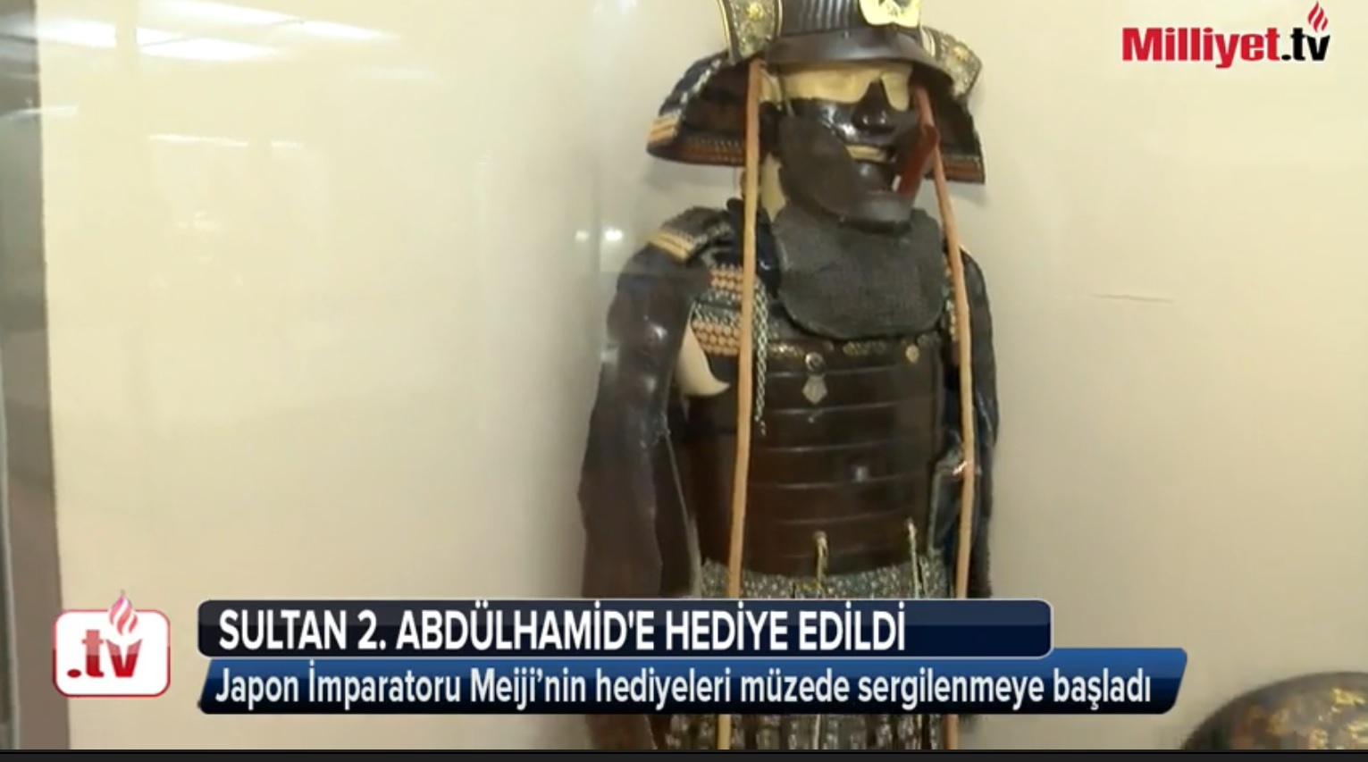 「トプカプ宮殿が国立宮殿管理局へ移管されるに伴って行われた作業中に確認されたこれら日本の品々を、宮殿コレクション博物館の訪問者に公開する場が設けられた。この品々は以前はトプカプ宮殿にあった。日本の明治天皇の甥である小松宮夫妻がアブデュルハミト2世を訪問された。この訪問は公式なものではなかったが、夫妻は温かな接見の栄に浴した。アブデュルハミト2世は彼らを非常に好意的に接遇した。さらには彼らに様々な階級の勲章が贈られた。小松宮夫妻の帰国後、日本の明治天皇はこの訪問の喜びを表した手紙を送った。手紙とともに大日本帝国の最高位勲章である(原文ママ)「大勲位菊花大綬章」を贈り、喜びを表した。この勲章の後ろには、日本語で「大勲位菊花大綬章、1887」と書いてある。他の贈り物は1892年に日本から贈られた甲冑だ。この甲冑の中には盾と刀、長旗も入っていた。この甲冑には400年以上の歴史がある。1615年の大阪夏の陣でも使用されたと推測されている。なぜなら甲冑の胸の部分にある跡があるからだ。これも日本の商人によってオスマン帝国に運ばれ、アブデュルハミト2世に贈呈された。この甲冑は世界でも限られた都市にあると知られている。寺院の細工も日本の天皇によって即位25周年の記念品として送られた。これもまた非常に特別な展示品だ。」