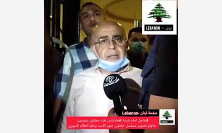 レバノンの複数のFacebookページは、トリポリ市のタッバーナ地区で記録された映像を公開した。この映像の中では、若者1名が市庁舎を襲撃し、テレビシリーズの撮影中にバッシャール・アサド(シリア大統領)の肖像およびシリア政府の旗を掲げようとした複数のシリア人俳優を追放する様子が映っている。