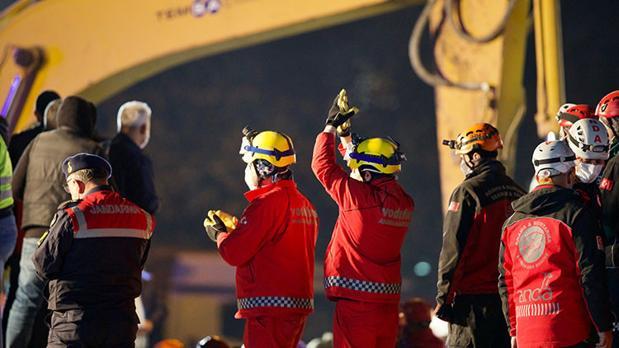 イズミル市セフェルヒサル沖合を震源地とする地震で最も被害の大きかったバイラクルでの救出作業中に喜ばしいニュースが届いた。瓦礫の下にうずもれていた14歳のイディル・シリンさんを発見したチームは、慎重な作業の末、この少女を挟まっていた場所から救い、瓦礫の下で救急処置を行った。