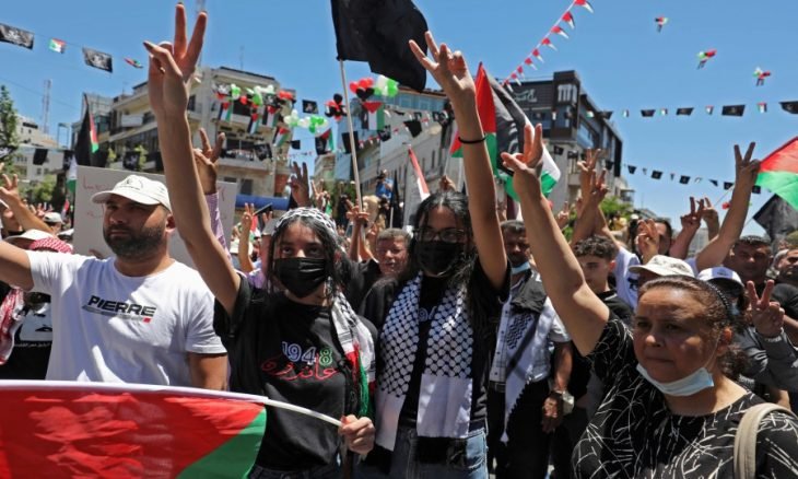 占領下のヨルダン川西岸地区で土曜日、73回目のナクバの日を祝うため、数百人のパレスチナ人が散発的なデモや抗議に参加した。