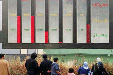 【ジャーメ・ジャム電子版】テヘラン市の大気の状態はイラン暦1400年ティール月26日[西暦7月17日]、数分前から第11区において指数200を超え、同区内のあるモニタリングステーションでは指数201を記録したが、これは同区の大気が、健康に非常に有害なものであることを表す紫色(注)であるということを示すものだ。