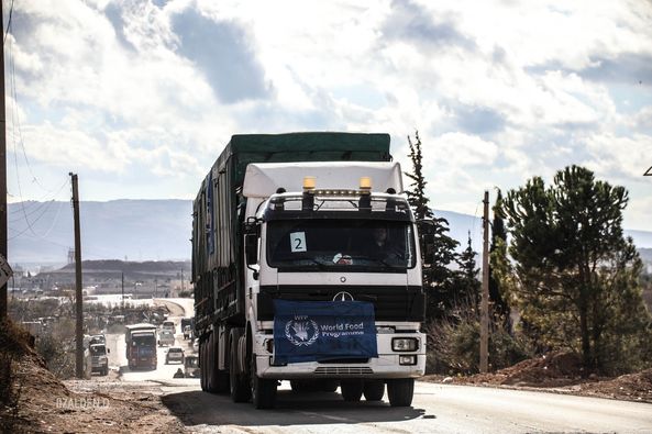 イドリブ県に駐在する「スーリーヤ・ネット」の特派員は、「14輌のトラックからなる世界食糧計画(WFP)の支援部隊がイドリブ県に入った」と述べた。