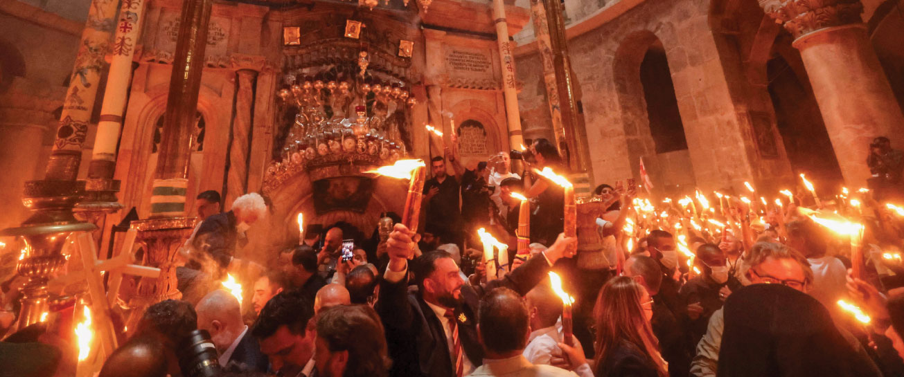 ■ハンナー大司教:占領部隊は武器を持って聖墳墓教会に入った…ラマッラ:キリスト教徒の感情の軽視...数千人のパレスチナ人らが、敵の弾圧にもかかわらず、聖墳墓教会内で「聖火の奇跡」を祝った。