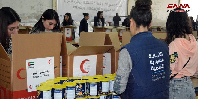 ■アラブ首長国連邦(UAE)による「善良の架け橋」キャンペーンが、ラタキア県で地震被災者のための食料詰め合わせ箱の梱包を開始