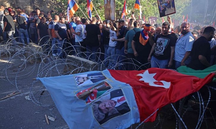 レバノン:在ベイルート・アゼルバイジャン大使館前で大規模デモ(1)