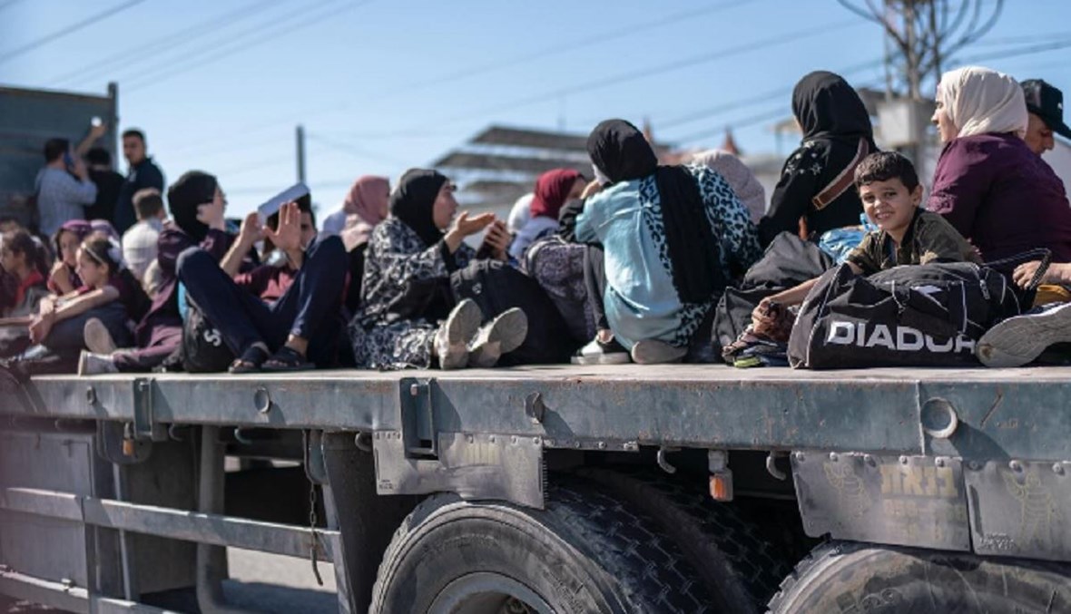 ■トラックで移動するガザの人々 「こんなことになる前に死んでしまえたらよかった」