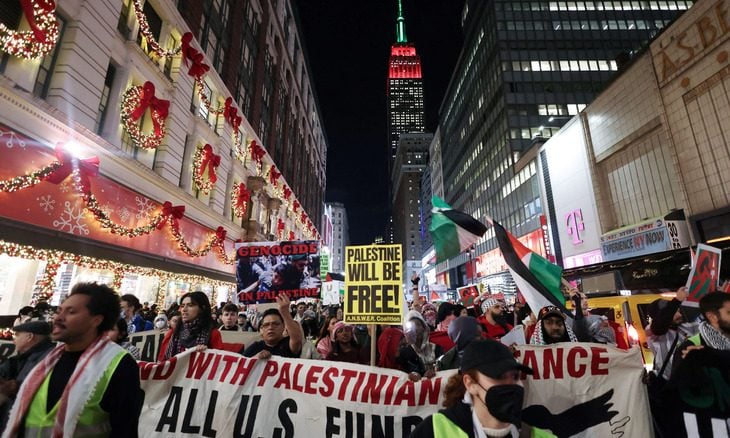 ニューヨークでの今回の抗議活動は、ガザでの停戦を求めるデモ参加者らがワシントンの民主党全国委員会本部前で連邦議会警察と衝突した2日後に発生した。